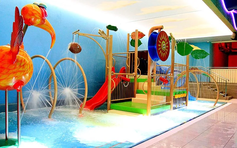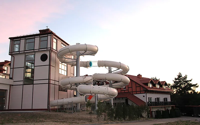 Basen, zjeżdżalnie, wodny plac zabaw dla dzieci, bicze wodne, leżanki, płaszcze wodne, 2 jacuzzi źródlane, WaveBall – kula tworząca sztuczna fale.