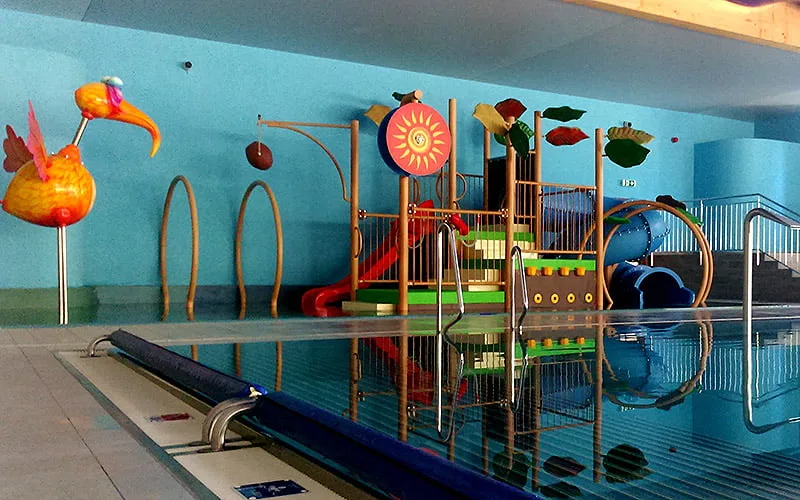 Do strefy basenowej nie można wchodzić z wózkami dziecięcymi. Ze względów bezpieczeństwa, wózki muszą zostać na zewnątrz.